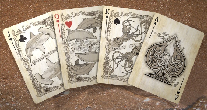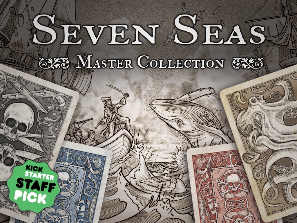 Brain Vessel Creative presents, the Seven Seas Master Collection. Featuring select playing cards illustrated by Jason Kreiger and co-produced with Douglas Koozer. Presenting four exclusive  playing card decks featuring Pirates, Sea Creatures, and Master sets. These century inspired originals are uniquely crafted and present a myriad of fine nautical artistry.