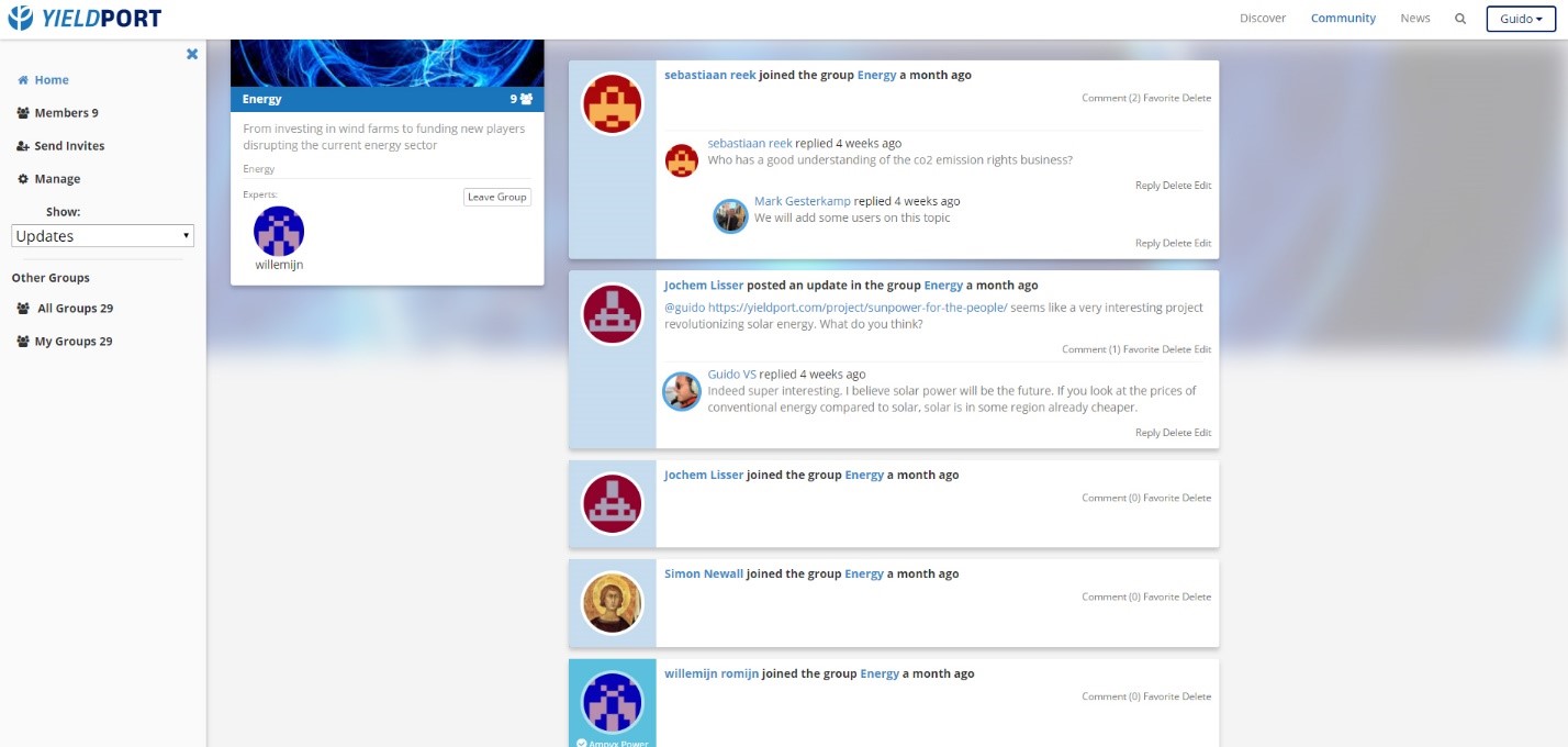 Yieldport offers a community and search engine which hosts all alternative finance opportunities under one roof. The platform crawls the web in real-time finding new opportunities on the spot. Once signed up for an account you can follow projects you like, see what’s happening with these projects, talk to experts within the discussion groups and see it all back on your personalised timeline. New offerings will automatically present itself within your dashboard based on your preferences which will save huge amounts of time searching the web for projects to invest in.